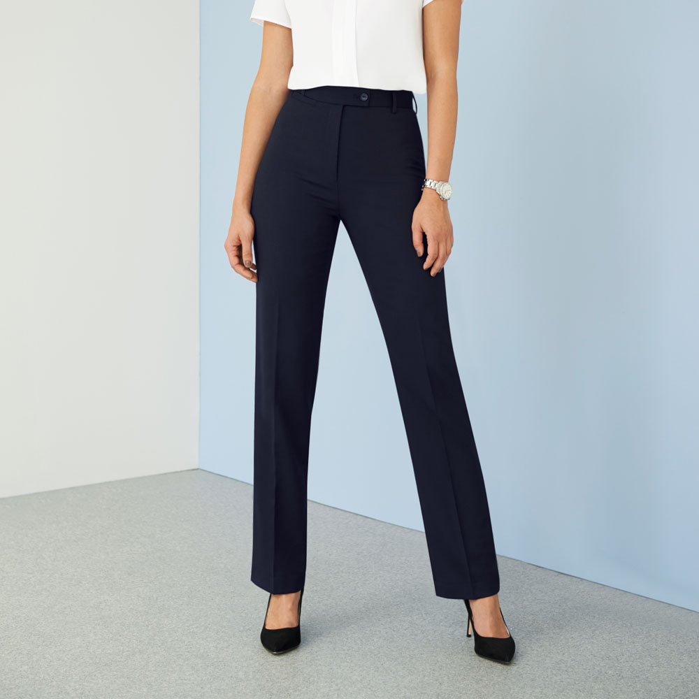 The Brook Taverner 2231 Grosvenor Straight Leg Trouser has a single button front fastening, with key card pocket, half lined with belt loops. Where fine tailoring meets technical excellence. This premium pair of trousers are beautifully designed and tailored in a lightweight, high-performance fabric made from 65% Polyester and 35% Wool produced exclusively for Brook Taverner by one of the finest weavers in Europe which is fully machine washable. They are ideal for financial & banking, travel sectors, hotels and front-of-house, retail and facilities management.