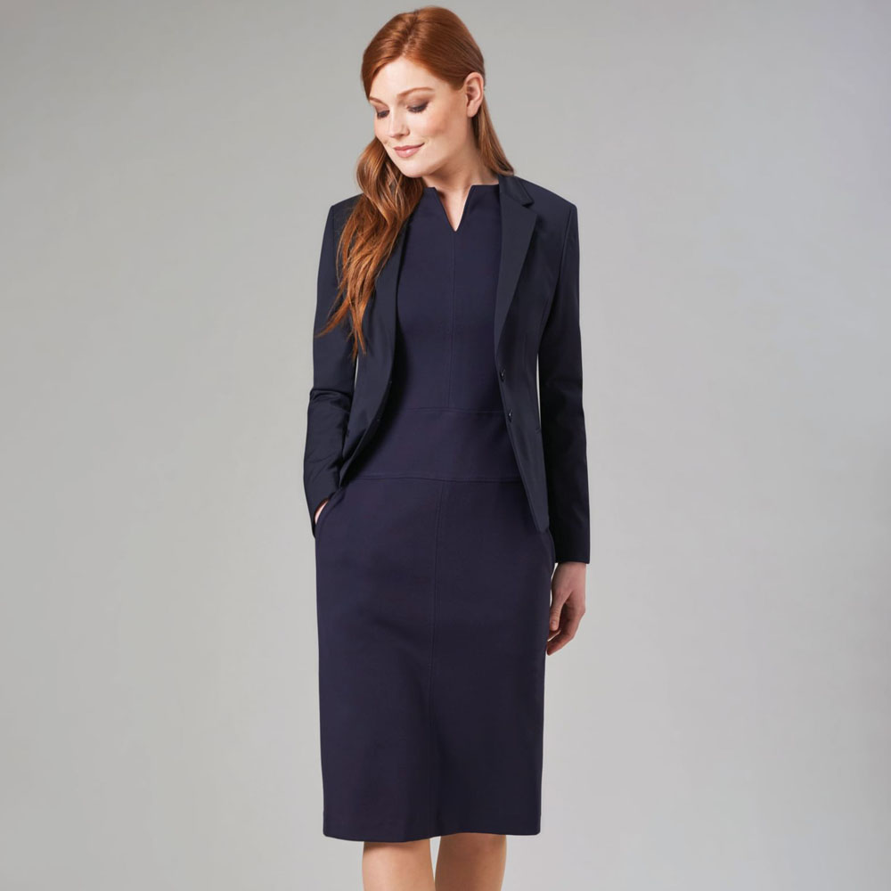 The Brook Taverner 2365 Celeste Jersey Stretch Dress is a modern dress that features a notch neckline, half sleeve, wide stretch waistband, two side pockets and centre back zip with a satin ribbon detail. The 2365 is manufactured with a premium 67% Viscose, 29% Polyamide, 4% Elastane blend, which is fully machine washable at 30 degrees.