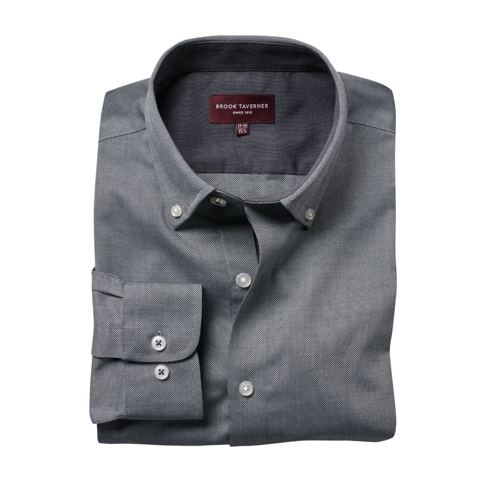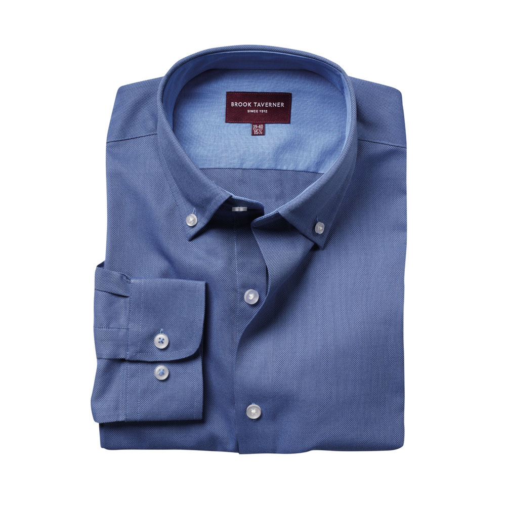 The Brook Taverner 7882 Toronto Long Sleeved Shirt is a tailored fit with a French placket, button down collar and a contrast detailing. Available in five colourways with matching ladies styles and fully machine washable at 40 degrees. Made from 60% Cotton, 40% Polyester-Royal Oxford. This easy iron shirt is extremely stylish and also has a matching short sleeved style called the Calgary Shirt