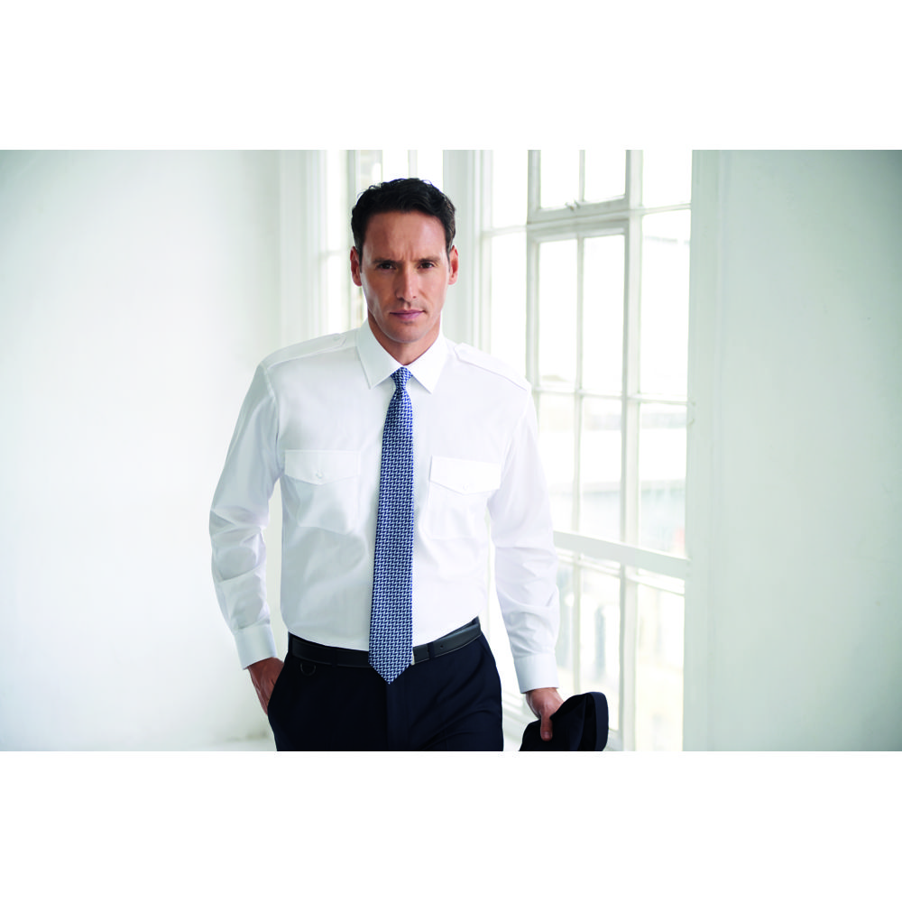 Long sleeve, classic fit, 2 button cuff, twin chest pockets with flap, pen holder, epaulettes, machine washable at 40 degrees, matches with the Olympus short sleeve pilot shirt