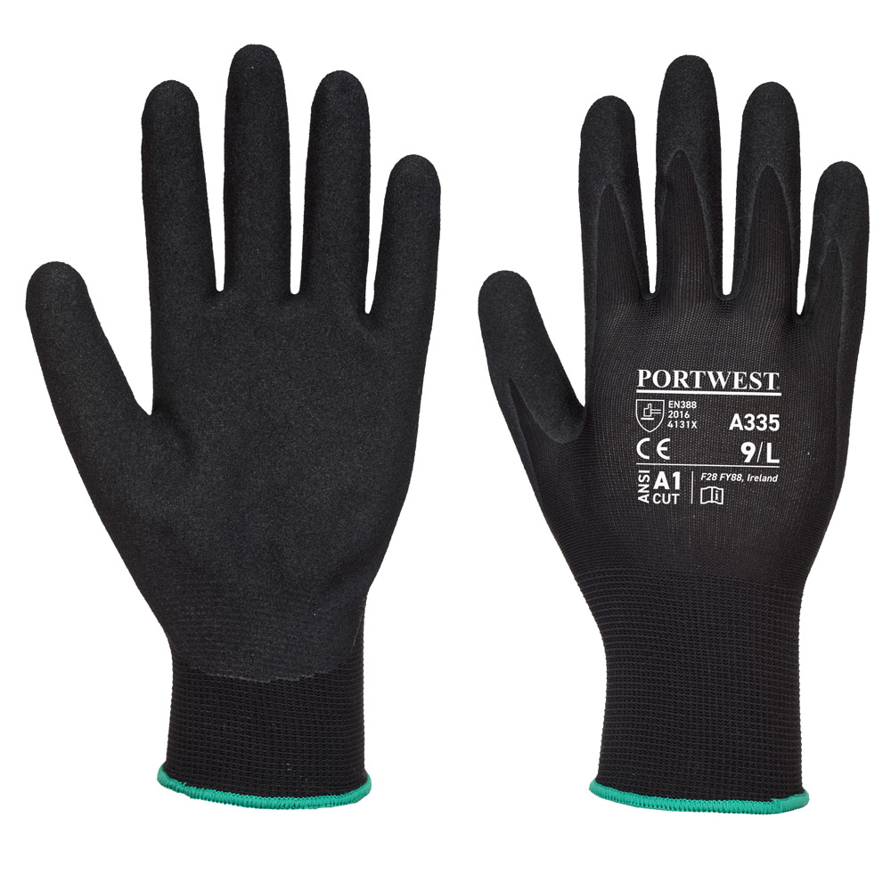 The Portwest A335 Dermi-Grip NPR15 Nitrile Sandy Glove is the perfect blend of comfort and value. Durable 15 gauge Polyester liner combined with a nitrile sandy coating for exceptional grip and dexterity in all conditions.