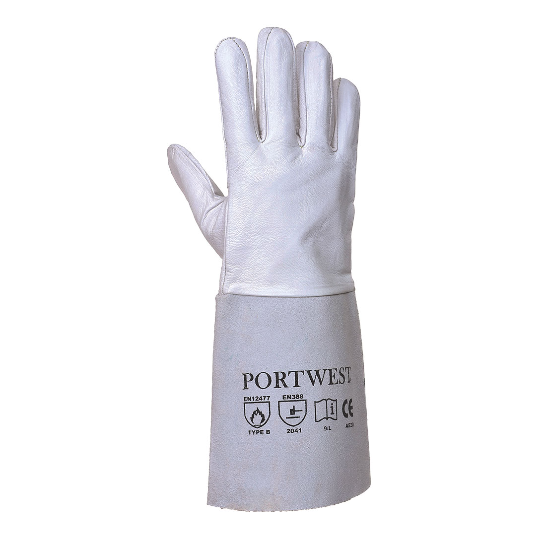 The Portwest A520 Premium Tig Welding Gauntlet is the ultimate in dexterity for welders. Soft, flexible goatskin palm with heavy duty split leather cuff. For use in type B (Tig Welding). Stitching made from para-aramid throughout.