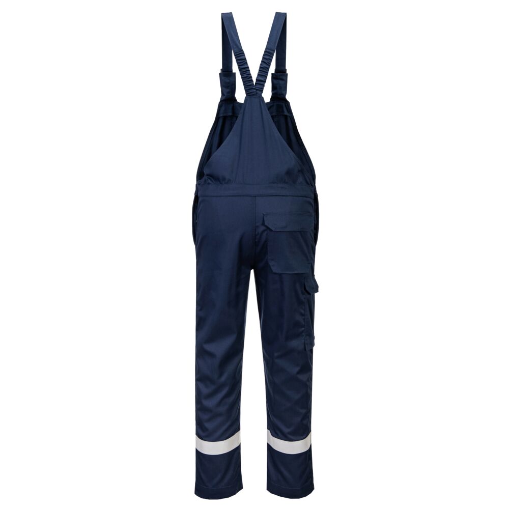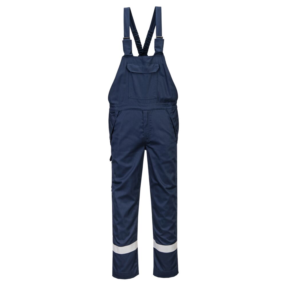 The Portwest FR418 Bizflame Work FR Bib & Brace is fully certified to EN13034 and offers excellent protection against chemicals, as well as flame resistant protection. Constructed in a superior cotton fabric which is treated for ultimate durability. Features include a secure stud and zip front metal free front closure. Pair with our FR609 FR Chemical Resistant Jacket to finish the look.