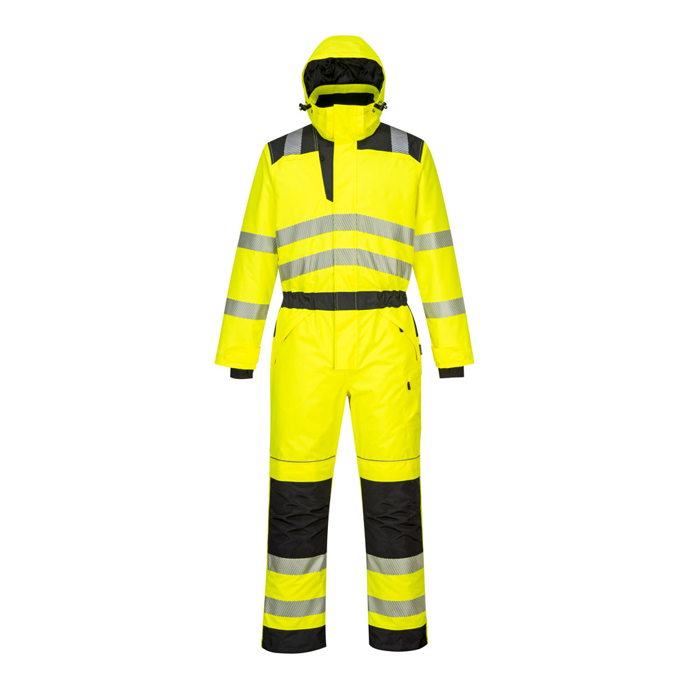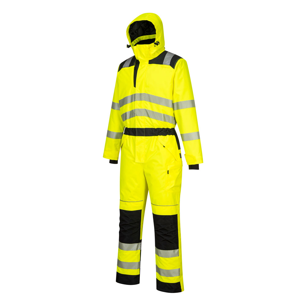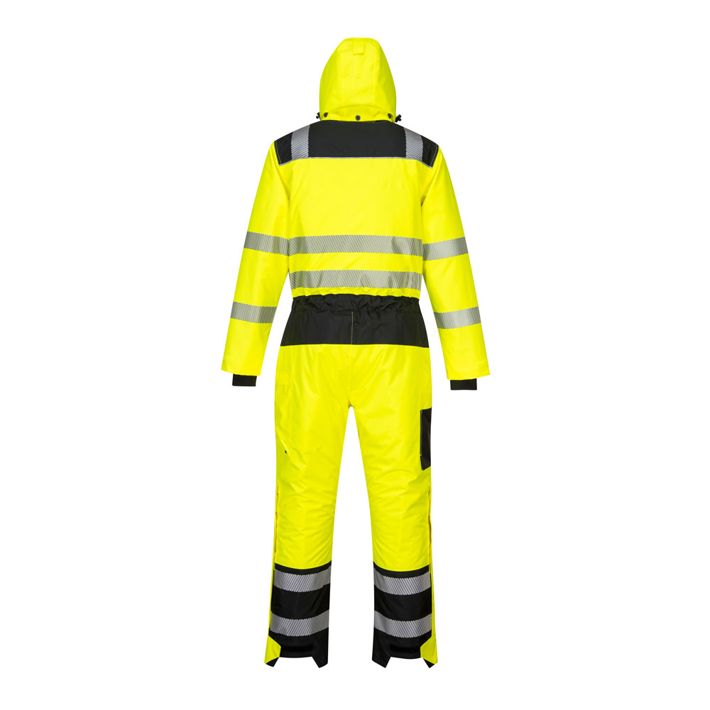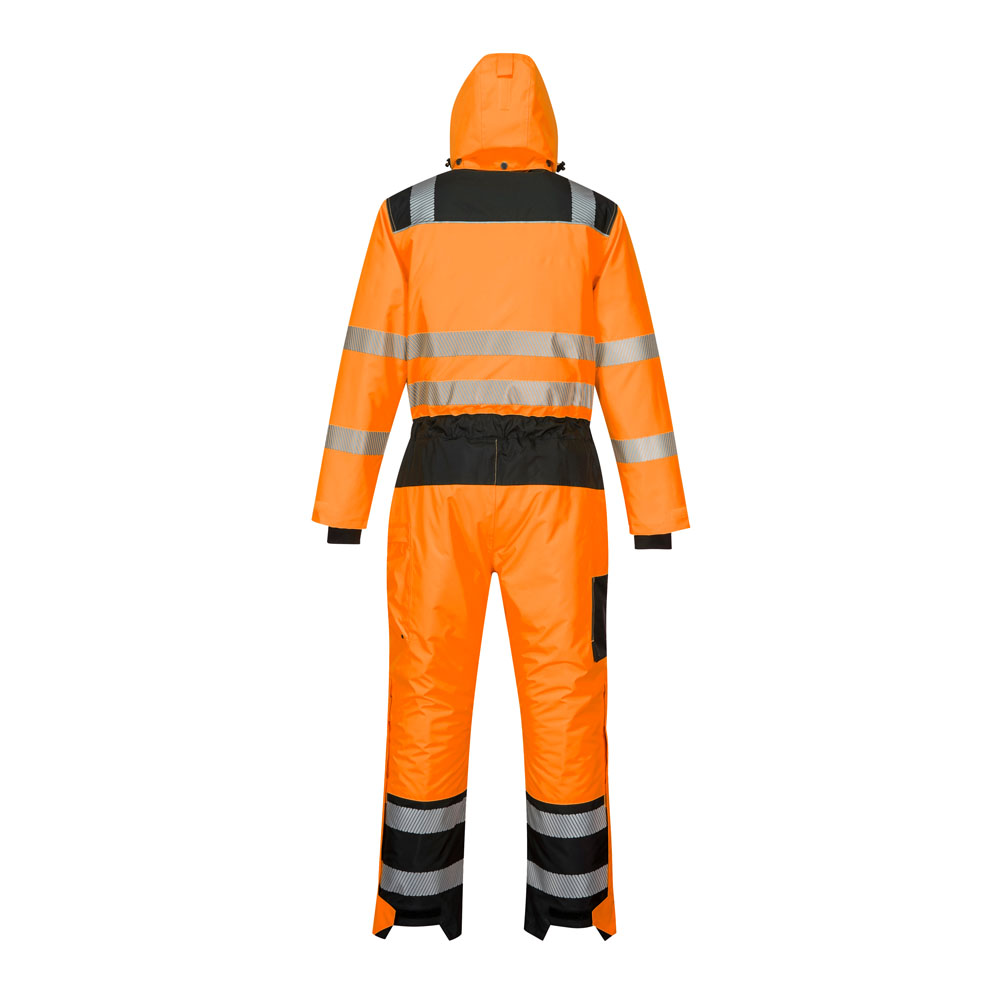 The Portwest PW352 Hi Vis Winter Coverall is a premium coverall combining total safety with cutting edge design. Made from our renowned 300D Oxford PU coated durable stain resistant fabric, this contemporary design hosts many outstanding features including a detachable quilt lined hood, heavyweight winter padding for maximum thermal protection, extra long side leg zips for ease of putting on and taking off and 8 functional secure storage pockets including top-loading kneepad pockets.