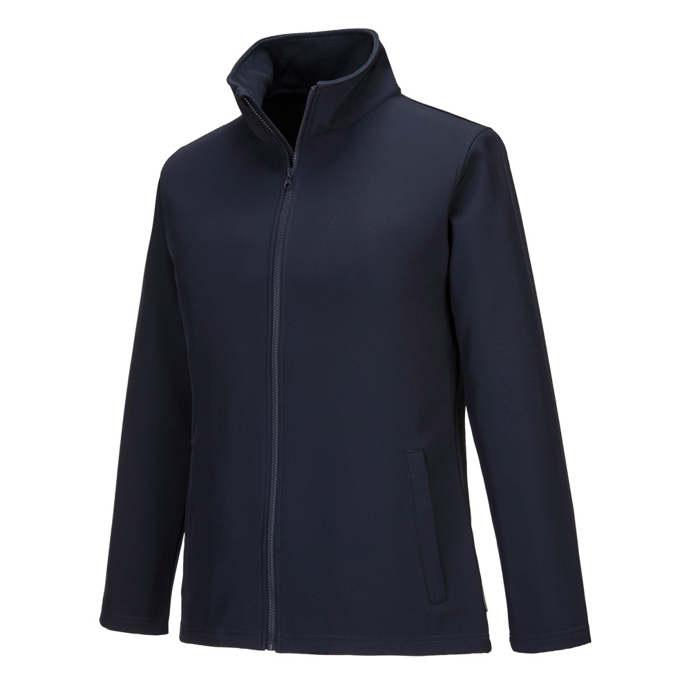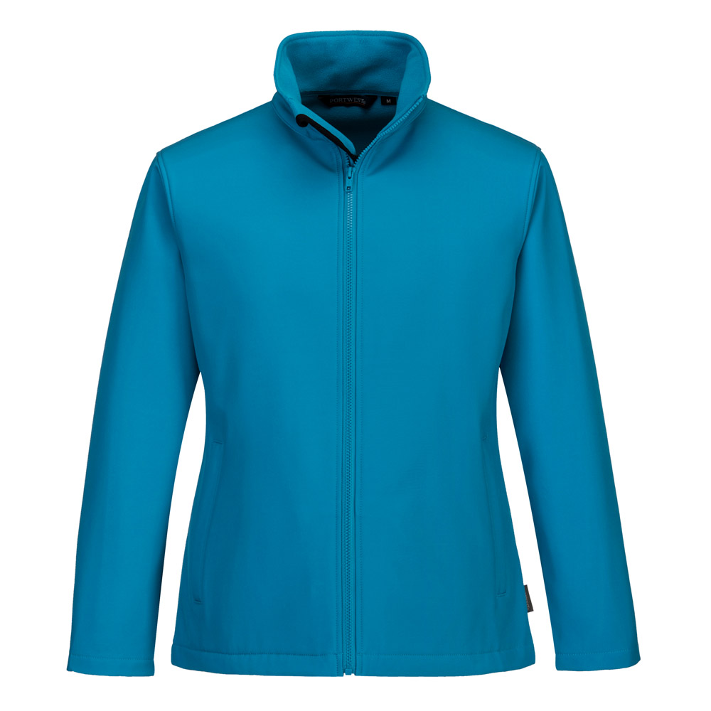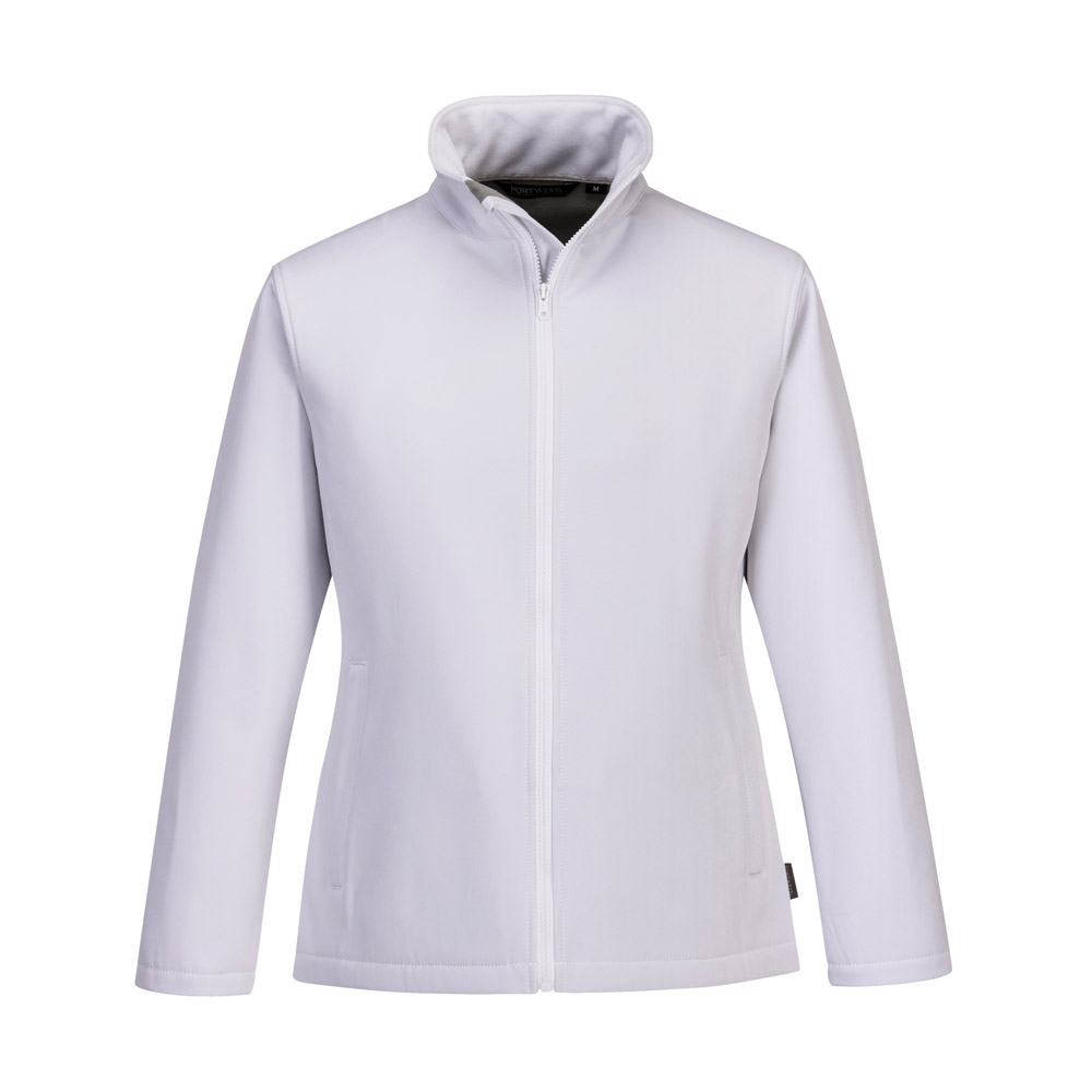 The Portwest TK21 Women’s Print & Promo Softshell is an excellent choice for corporate wear as it is ideal for over printing and embroidery. This woven stretch two layer softshell is fleece backed for additional warmth and comfort, whilst the mechanical stretch allows for ease of movement. Features include two lower external front zip secure pockets, two internal pockets and an inner zip guard.